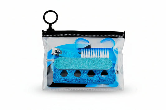 5-Piece PEDICURE TOOLS Set in Conveient PVC Travel Pouch (Pink/Blue)