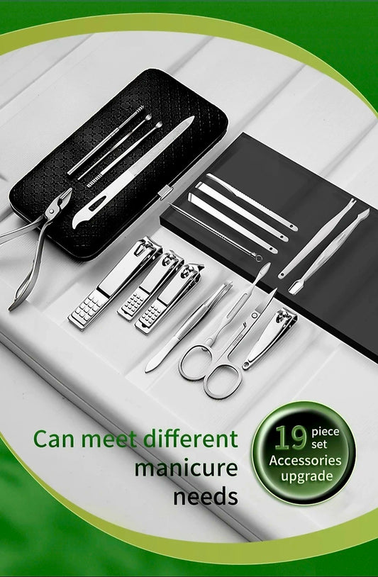 19-Piece PEDICURE TOOLS Set in PU-LEATHER Travel Storage Organizer