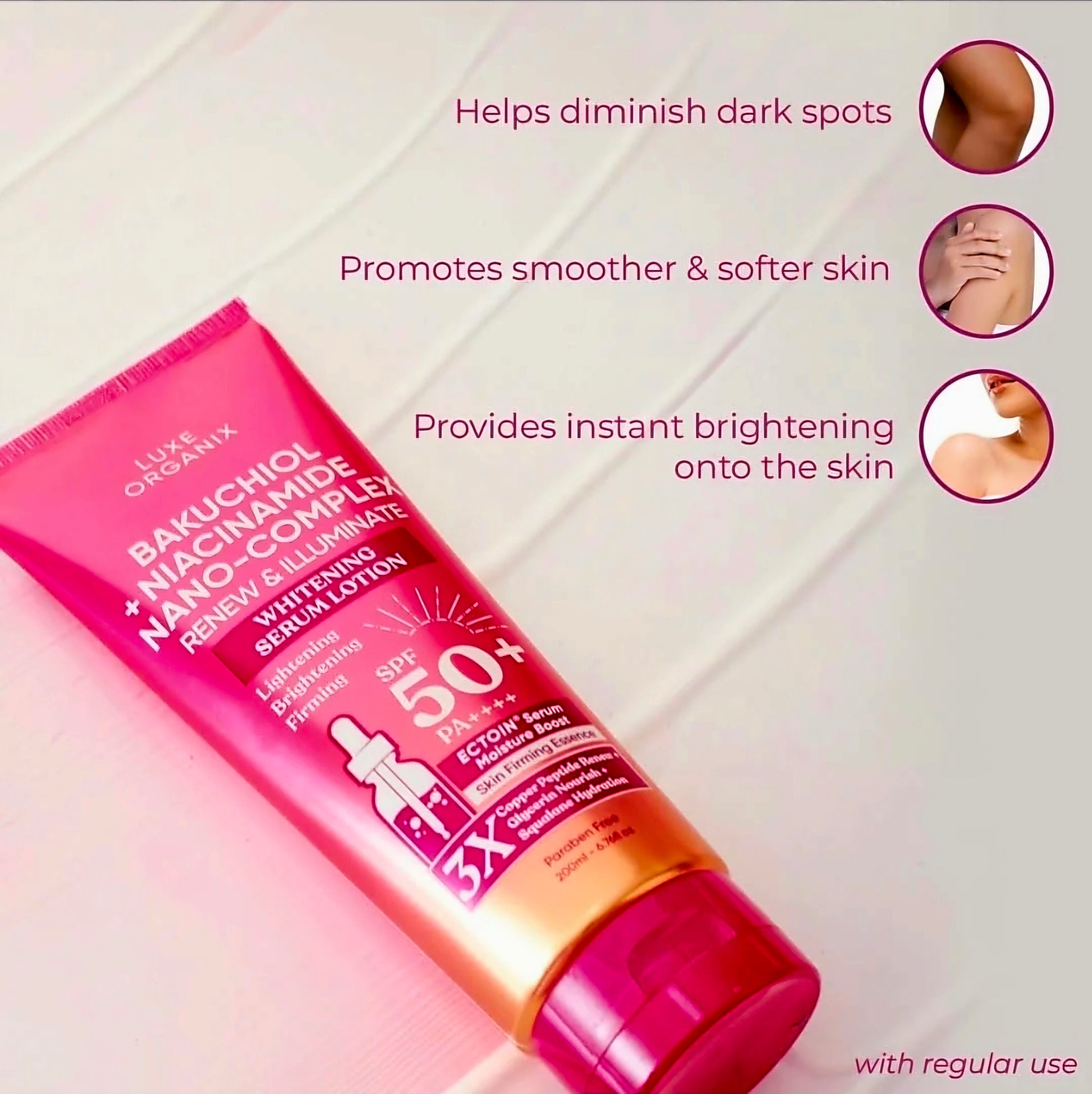 Luxe Organix BAKUCHIOL + NIACINAMIDE NANO-COMPLEX Renew & Iluminate Whitening Serum Lotion 200ml
