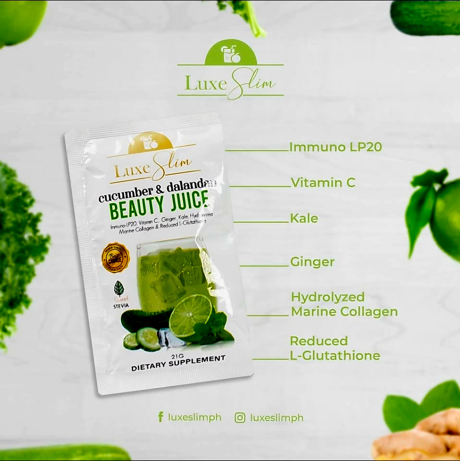 Luxe Slim CUCUMBER & DALANDAN BEAUTY JUICE 21g × 8-sachets Herbal Drink Mix
